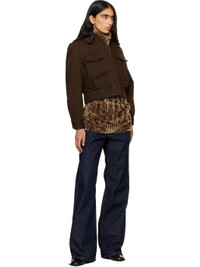 Non-stretch denim jacket. · Fading throughout · Spread collar · Two-way zip closure · Flap pockets at chest · Buttoned barrel cuffs · Inverted box pleat at back yoke · Full twill lining Supplier color: Brown Body: 100% cotton. Lining 1: 100% viscose. Lining 2: 51% cotton, 49% viscose. Made in Italy 252358F060006