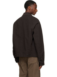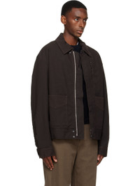 Insulated cotton broadcloth jacket in brown-purple tones. · Denim trim at collar, pockets, and cuffs · Spread collar · Concealed zip closure · Patch pockets at waist · Adjustable buttoned tab at back hem · Adjustable buttoned barrel cuffs · Quilted lining Supplier color: Dark Brown Body: 100% cotton. Lining: 35% cotton, 33% viscose, 31% polyester, 1% nylon. Made in Bulgaria 252358M180010