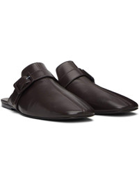 Buffed leather slip-on loafers. · Square toe · Pin-buckle strap at vamp · Leather sole with rubber injections Supplier color: Dark brown Upper: leather. Sole: leather, rubber. Made in Italy 252358M231016