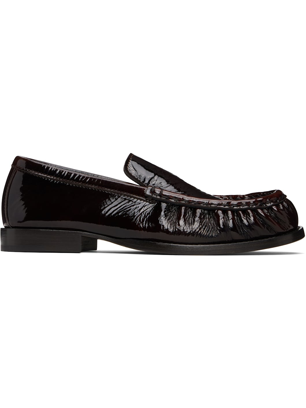Patent leather loafers. · Moc toe · Buffed leather lining · Stacked leather heel with rubber injection · Leather sole Supplier color: Brown Upper: leather. Sole: leather, rubber. Made in Italy 252358F121003