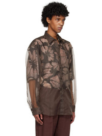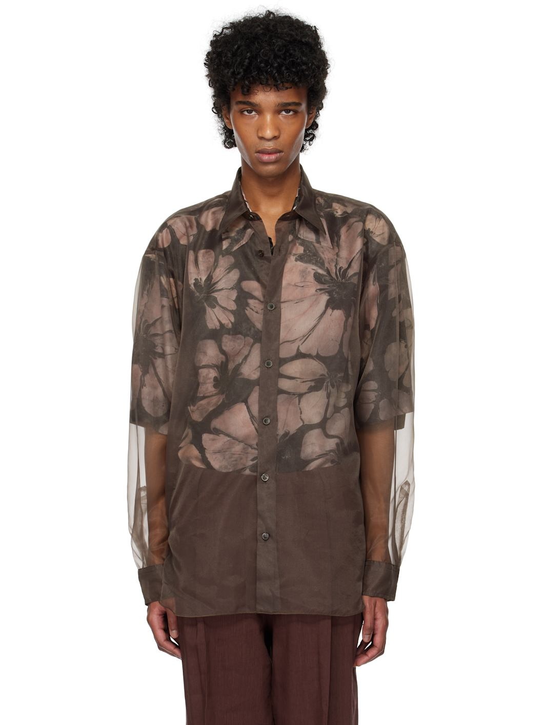 Sheer polyester organza shirt. · Spread collar · Button closure · Shirttail hem · Pleats at adjustable single-button barrel cuffs Supplier color: Brown 100% polyester. Made in Portugal 251358M192047