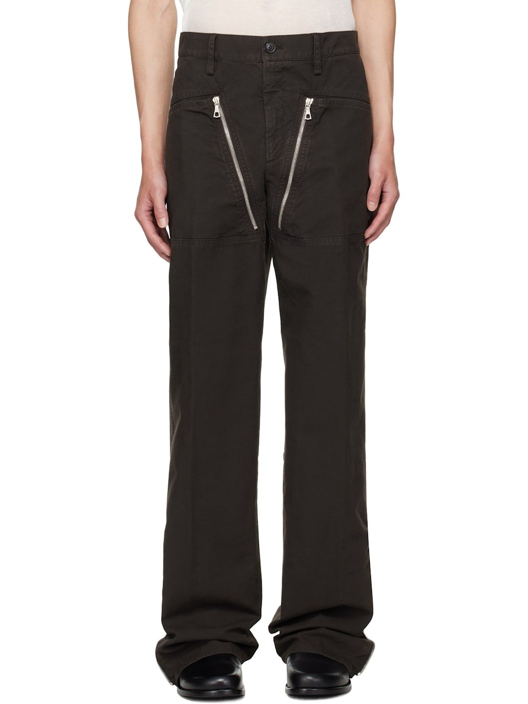 Overdyed cotton twill trousers. · Belt loops · Four-pocket styling · Zip fly · Pockets with zip gusset at front · Paneled legs · Logo-engraved antiqued copper-tone hardware Supplier color: Brown 100% cotton. Made in Romania 252358M191031