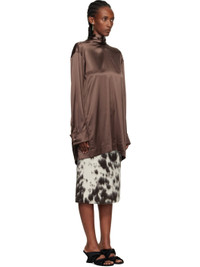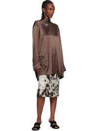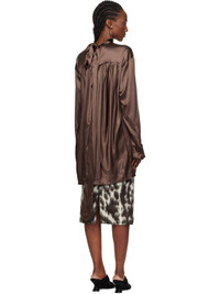 Silk satin blouse. · Polka-dot pattern throughout · Stand collar with wraparound self-tie scarf · Buttoned French cuffs · Pleats at back yoke Supplier color: Brown 94% silk, 6% stretch. Made in Hungary 252358F107008
