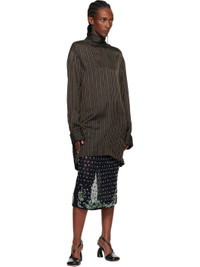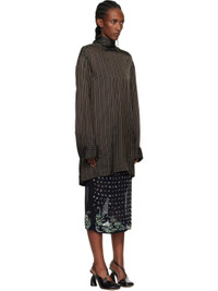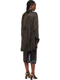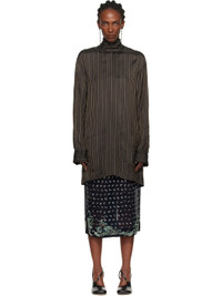 Crinkled satin tunic-style blouse. · Jacquard stripe pattern throughout · Stand collar with wraparound self-tie scarf · Buttoned French cuffs · Pleats at back yoke Supplier color: Brown 100% cupro. Made in Hungary 252358F107004