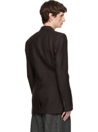 Wool twill blazer. · Notched lapel · Double-breasted button closure · Welt pocket at chest · Flap pockets at waist · Padded shoulders · Surgeon's cuffs · Central vent at back hem · Welt pocket at interior · Full satin lining Supplier color: Dark brown Body: 100% wool. Lining 1: 100% cupro. Lining 2: 100% viscose. Made in Comoros 252358M195012