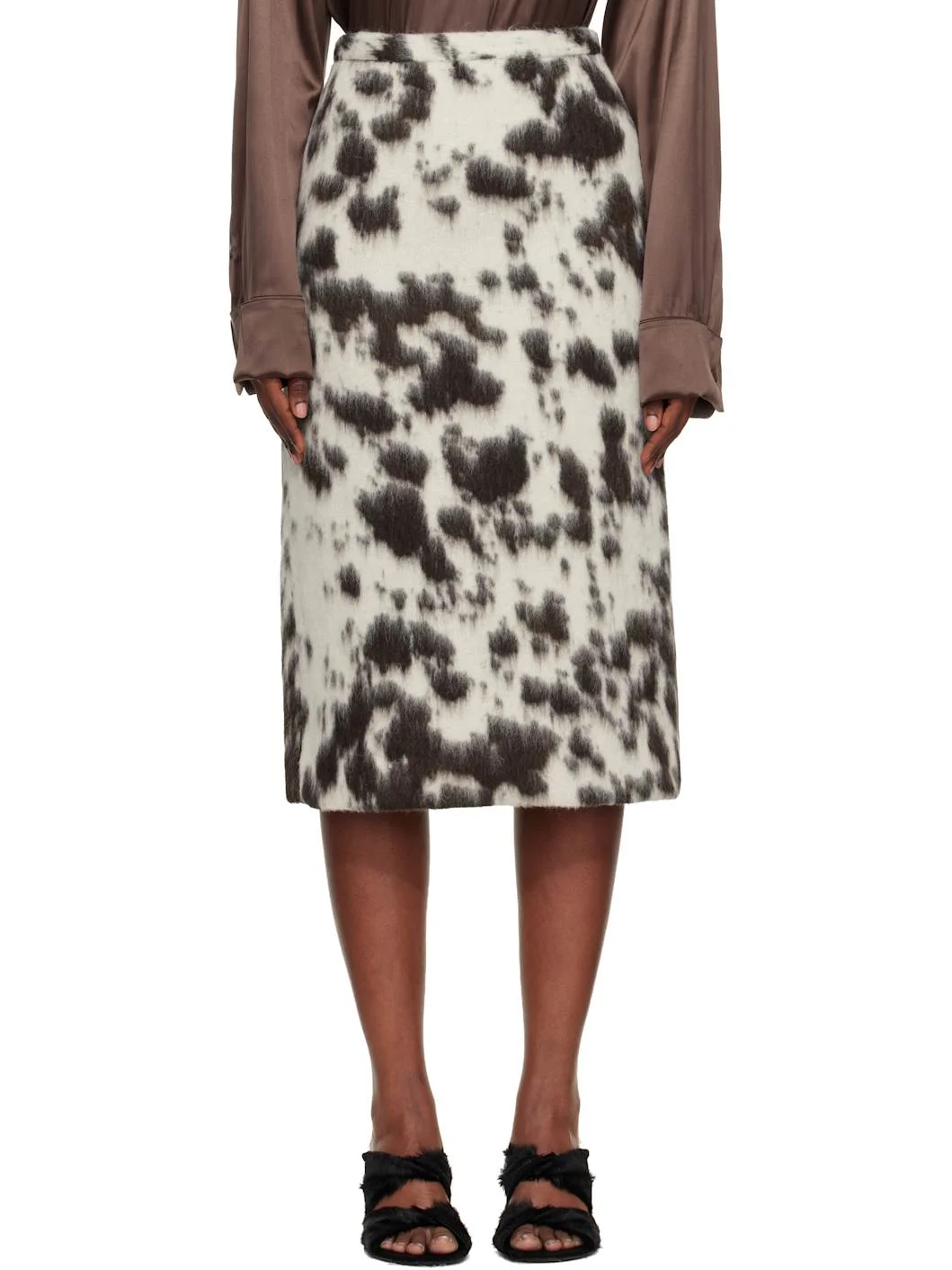 Brushed knit wool-blend midi skirt. · Zip closure with hook eye at back waist · Vented back hem · Full satin lining Supplier color: Brown Body: 51% wool, 19% polyester, 15% acrylic, 12% alpaca, 3% nylon. Lining: 100% viscose. Made in Bulgaria 252358F092034