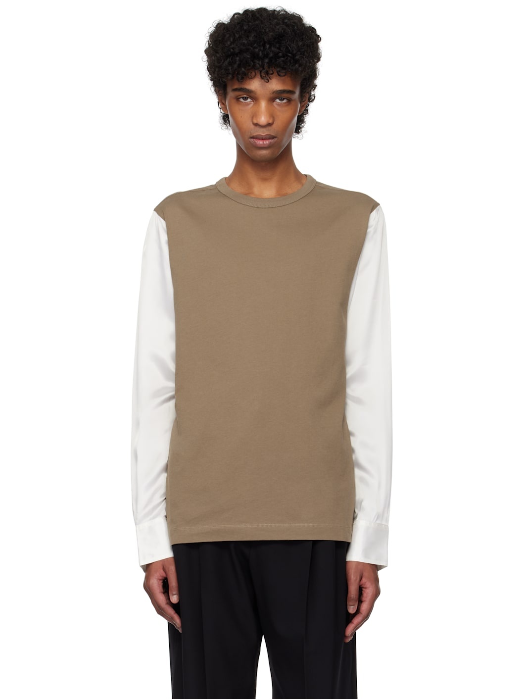 Cotton-blend jersey and twill T-shirt. · Paneled construction · Rib-knit crewneck · Pleats at adjustable single-button barrel cuffs Supplier color: Mud 70% cotton, 30% viscose. Made in Turkey 251358M213046