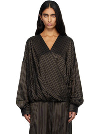 Cupro satin shirt. · Stripes throughout · Wrap construction · Plunging V-neck · Elasticized hem · Dropped shoulders · Buttoned barrel cuffs Supplier color: Brown 100% cupro. Made in Portugal 252358F109009