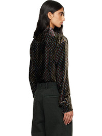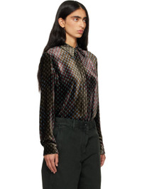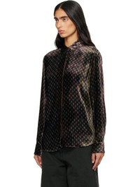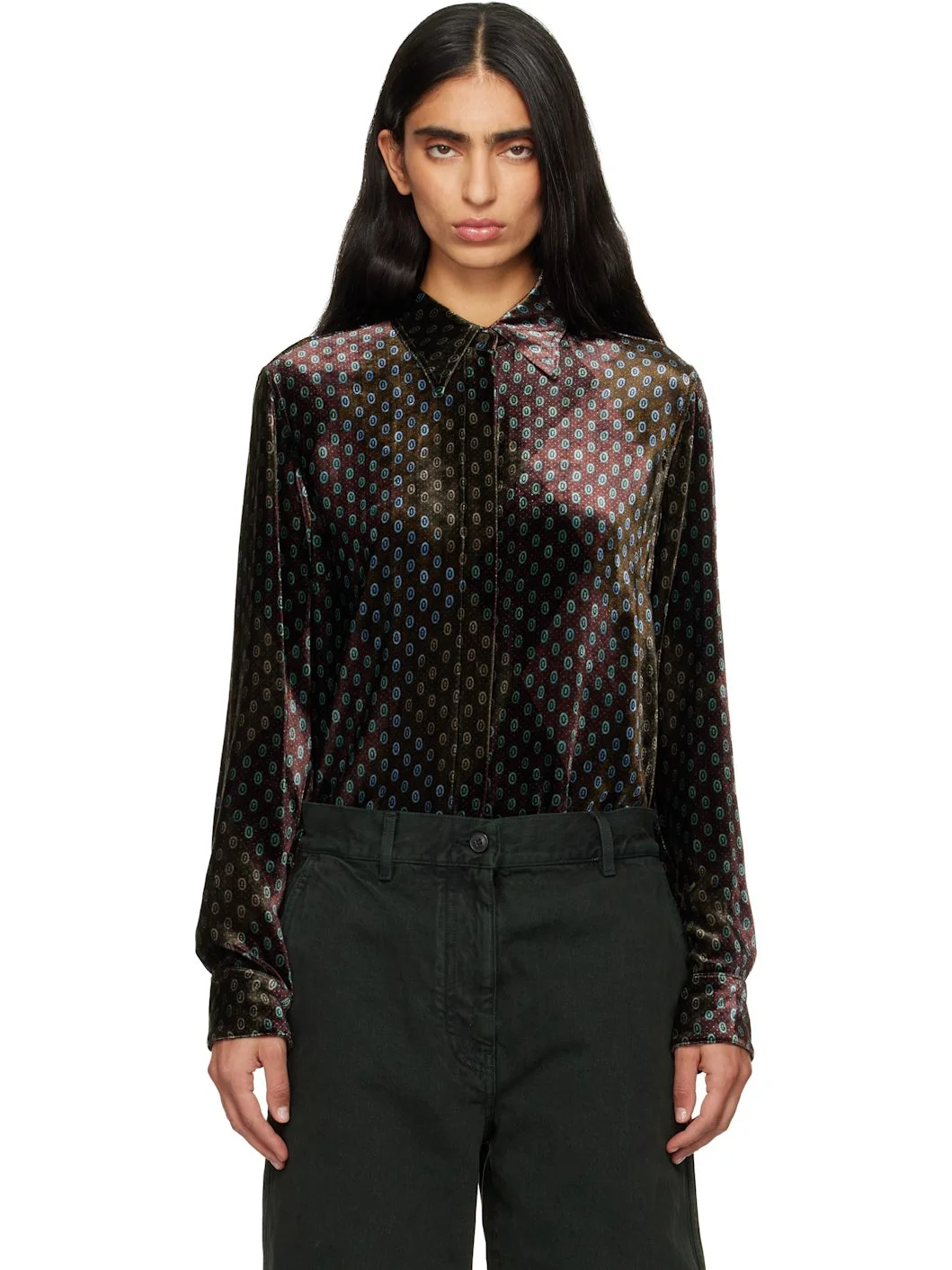 Viscose- and silk-blend velvet shirt. · Graphic pattern printed throughout · Spread collar · Button closure · Shirttail hem · Buttoned barrel cuffs Supplier color: Khaki 82% viscose, 18% silk. Made in Tunisia 252358F109018