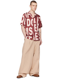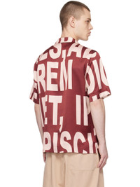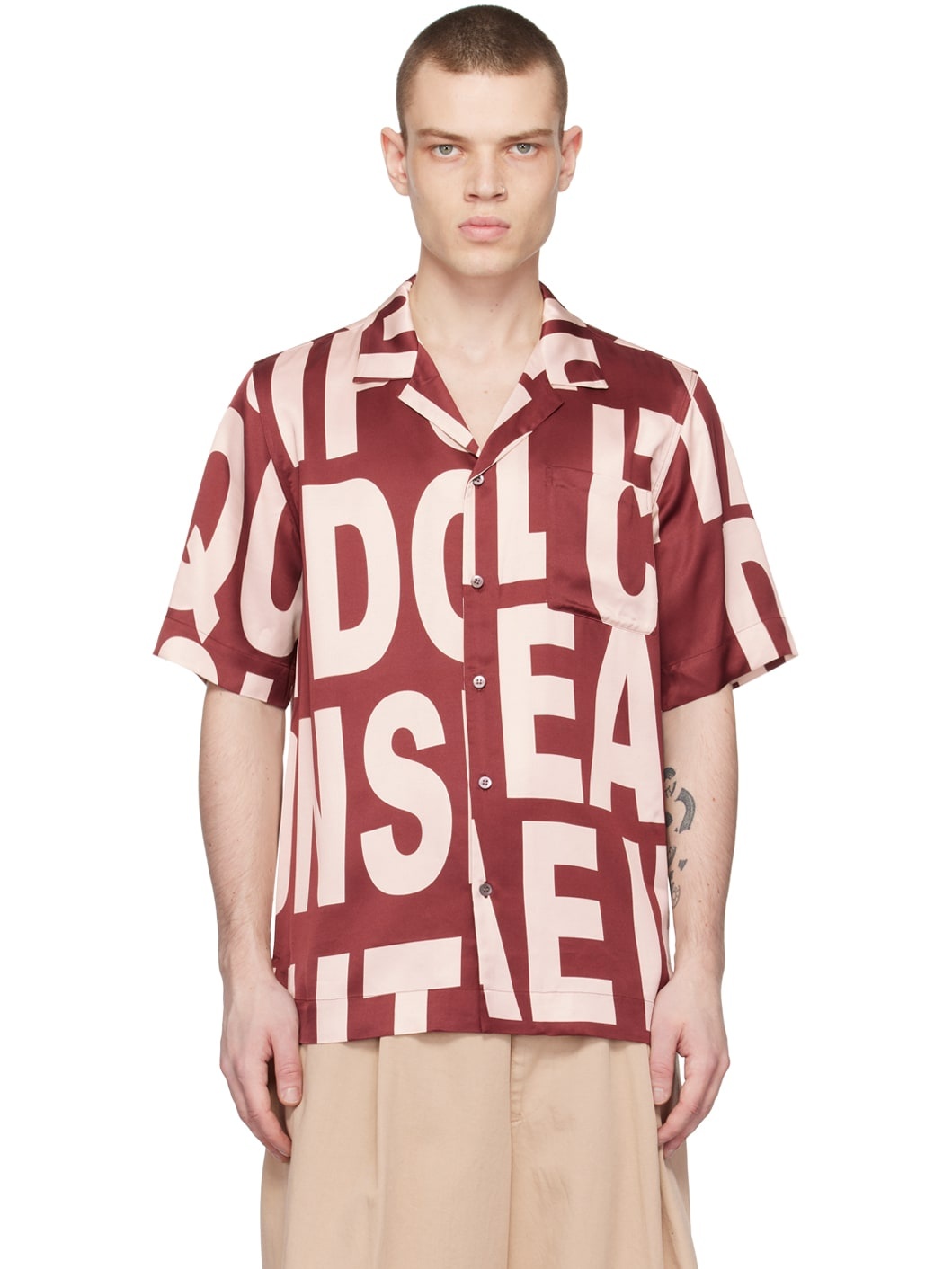 Viscose satin shirt. Text printed throughout. · Open spread collar · Button closure · Patch pocket · Vented side seams Supplier color: Burgundy 100% viscose. Made in Tunisia 231358M192093