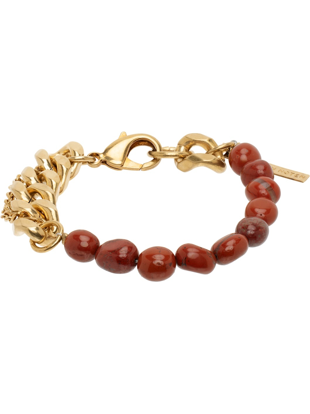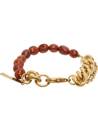 Handcrafted tiered curb chain bracelet in gold-tone brass. - Beaded burgundy stones at length - Logo plaque at lobster-clasp fastening - L8.5 Supplier color: Dark red