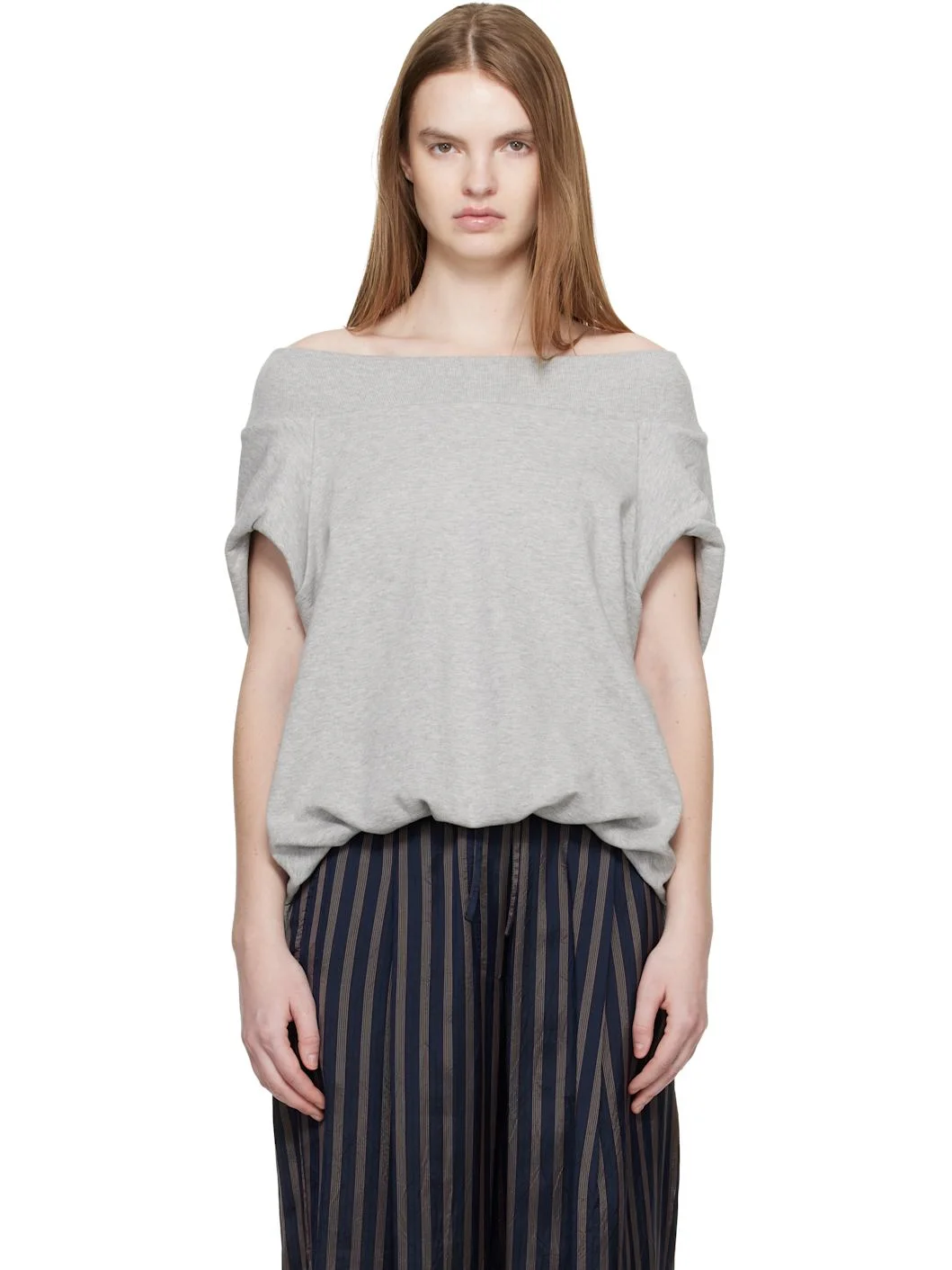 Heavyweight cotton jersey sweatshirt. · Rib-knit at boatneck · Ruching at bubble hem · Raglan sleeves · Full jersey lining Supplier color: Grey Melange 100% cotton. Made in Turkey 261358F098001