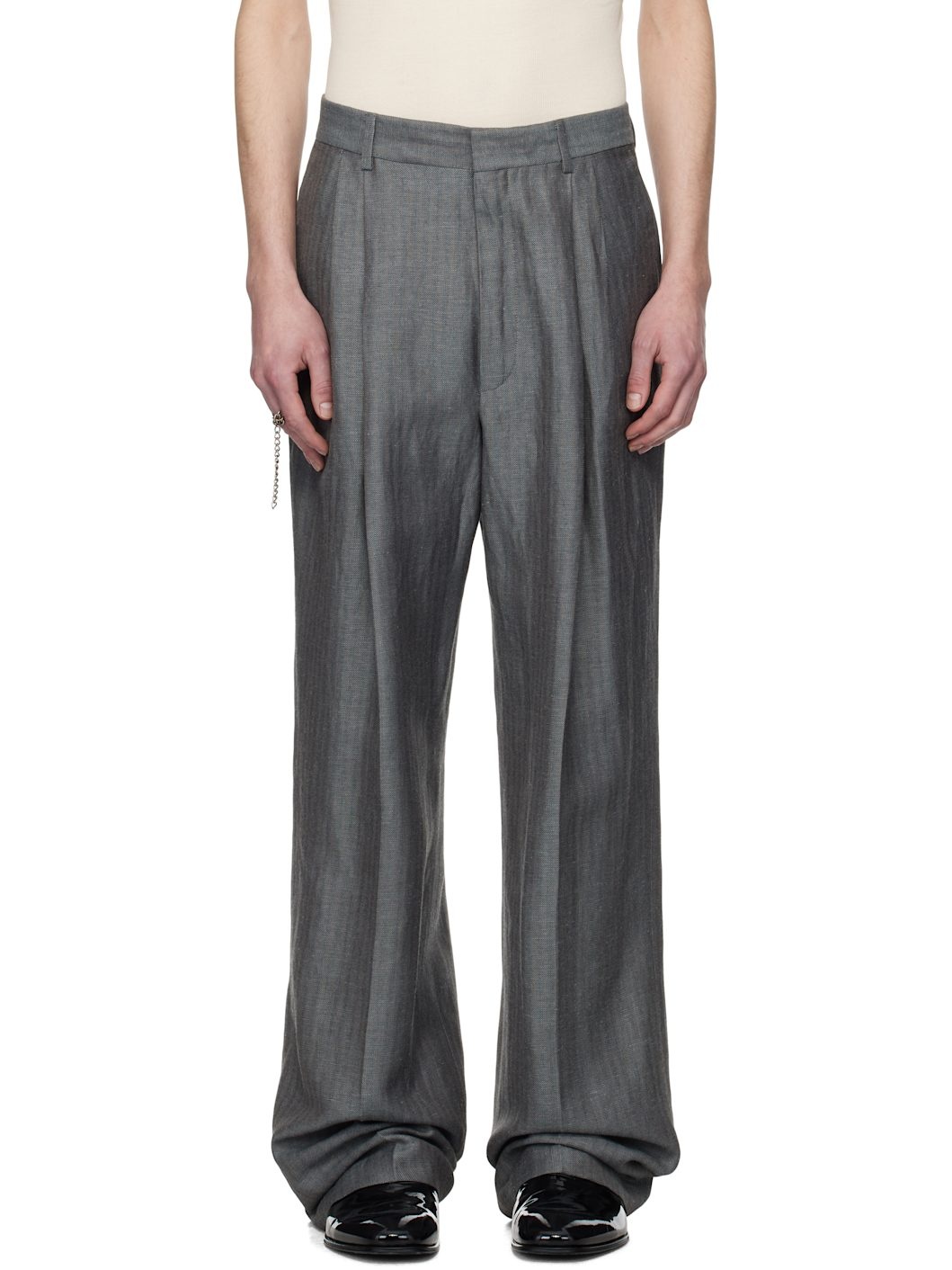 Gray Linen Straight Trousers