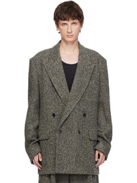 Wool-blend tweed blazer. · Loose-fit · Peaked lapel · Double-breasted button closure · Welt pocket at chest · Flap pockets at waist · Padded shoulders · Surgeon's cuffs · Welt pocket at interior · Full satin twill lining Supplier color: Grey Body: 95% wool, 5% viscose. Lining 1: 100% cupro. Lining 2: 100% viscose. Made in Morocco 252358M195019