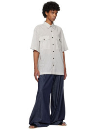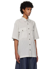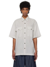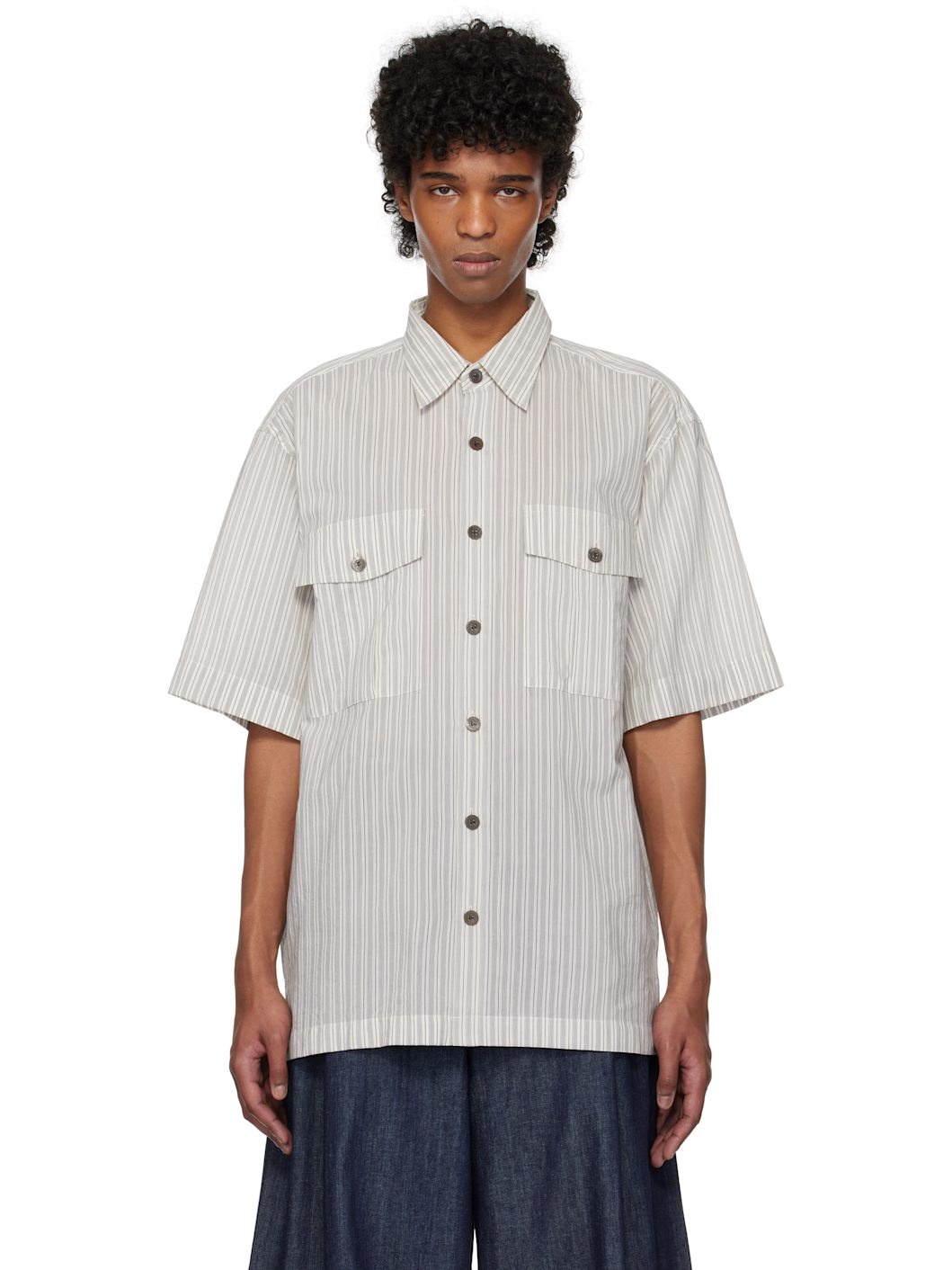 Cotton- and cupro-blend poplin shirt. Stripes throughout. · Spread collar · Button closure · Flap pockets · Vented side seams · Dropped shoulders Supplier color: Light grey 55% cotton, 45% cupro. Made in Hungary 251358M192059