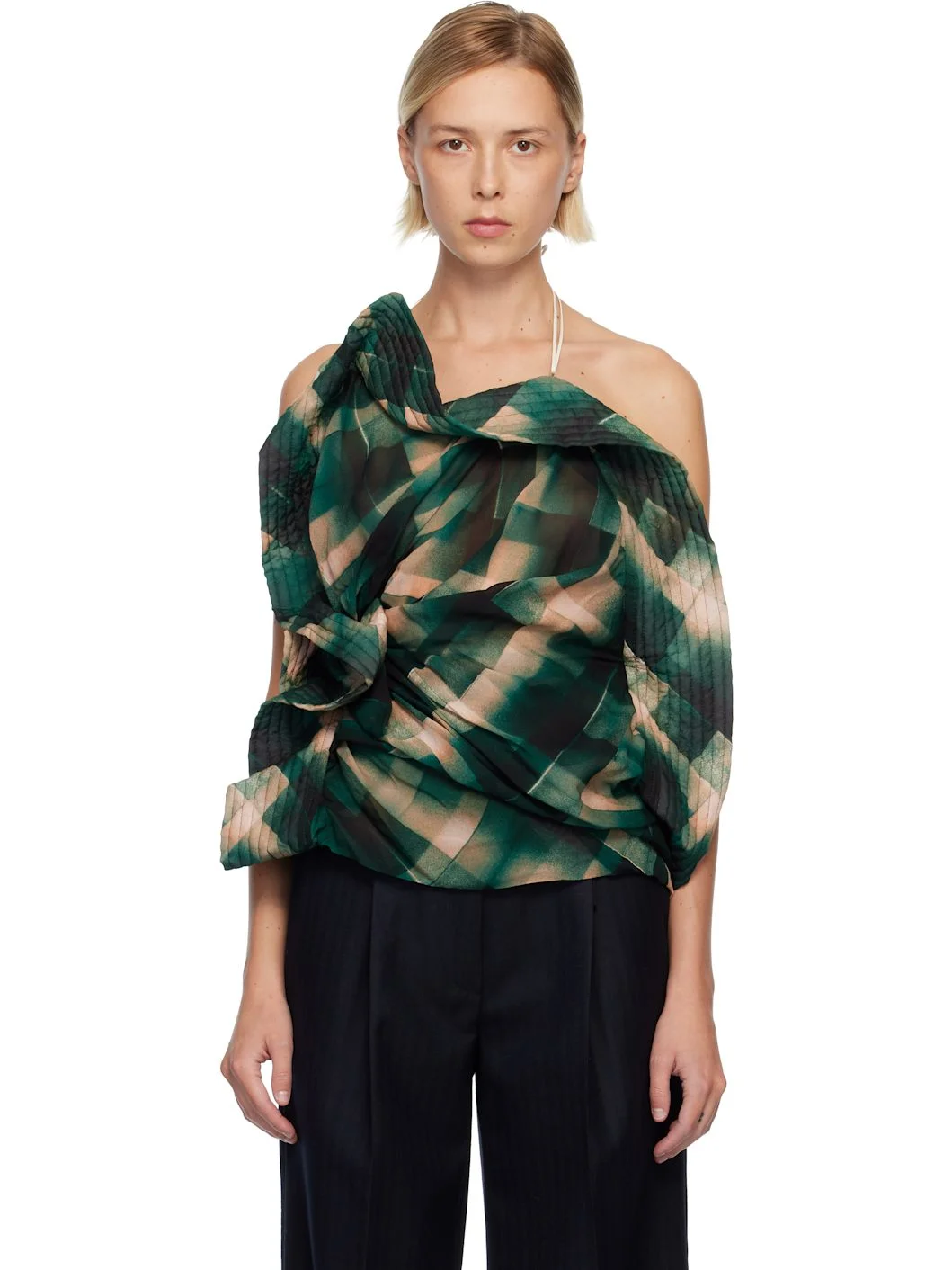 Viscose voile blouse · Check pattern and quilted panel throughout · Draped and asymmetrical construction · Self-tie halter strap · Open back Supplier color: Bottle 100% viscose. Made in Poland 252358F107010