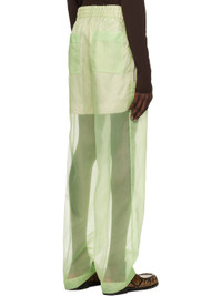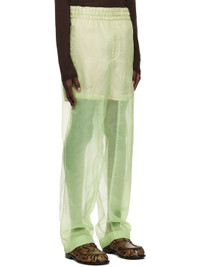 Straight-leg polyester organza trousers. Lightweight and semi-sheer. · Layered construction · Concealed drawstring at elasticized waistband · Four-pocket styling · Zip fly · Partial viscose satin lining Supplier color: Light green Body: 100% polyester. Lining: 100% viscose. Made in Romania 251358M191068