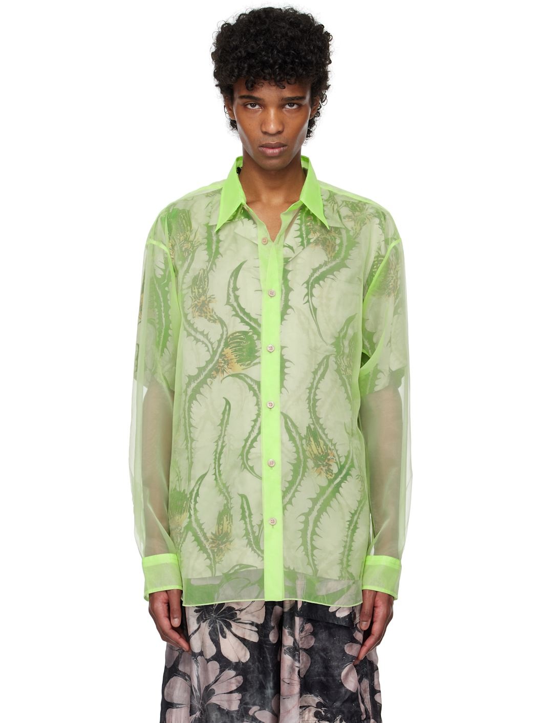 Sheer polyester organza shirt. · Spread collar · Button closure · Shirttail hem · Pleats at adjustable single-button barrel cuffs Supplier color: Light green 100% polyester. Made in Portugal 251358M192048