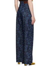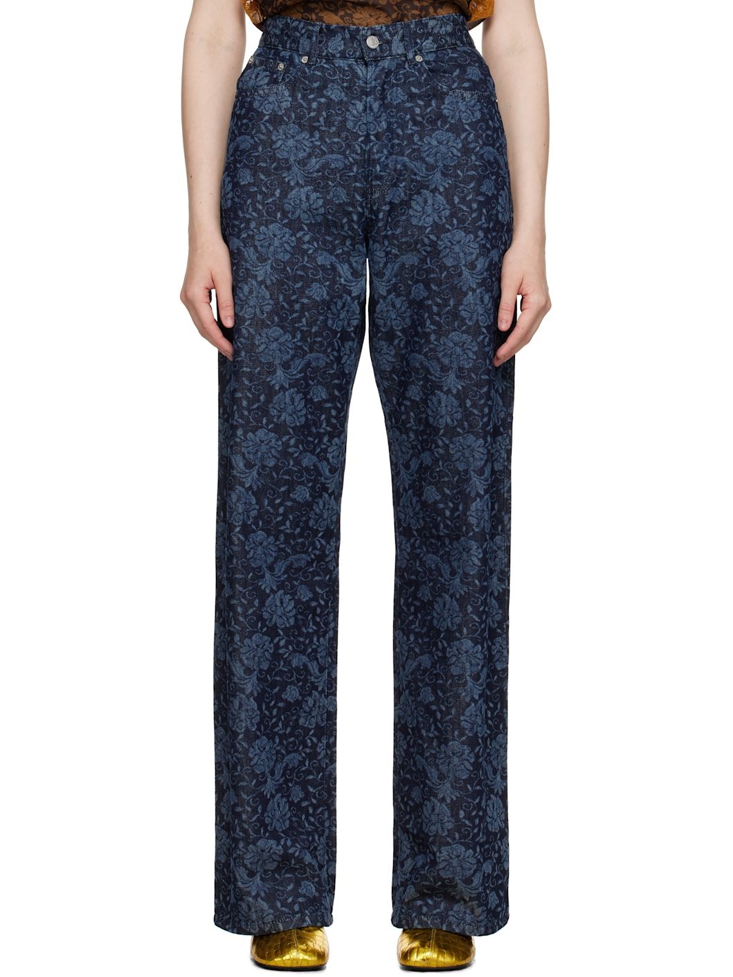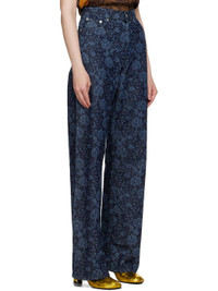 Wide-leg non-stretch denim jeans. Laser-printed floral pattern throughout. · Mid-rise · Belt loops · Five-pocket styling · Button fly · Logo patch at back waistband · Logo-engraved silver-tone hardware Supplier color: Indigo 100% cotton. Made in Tunisia 251358F069002