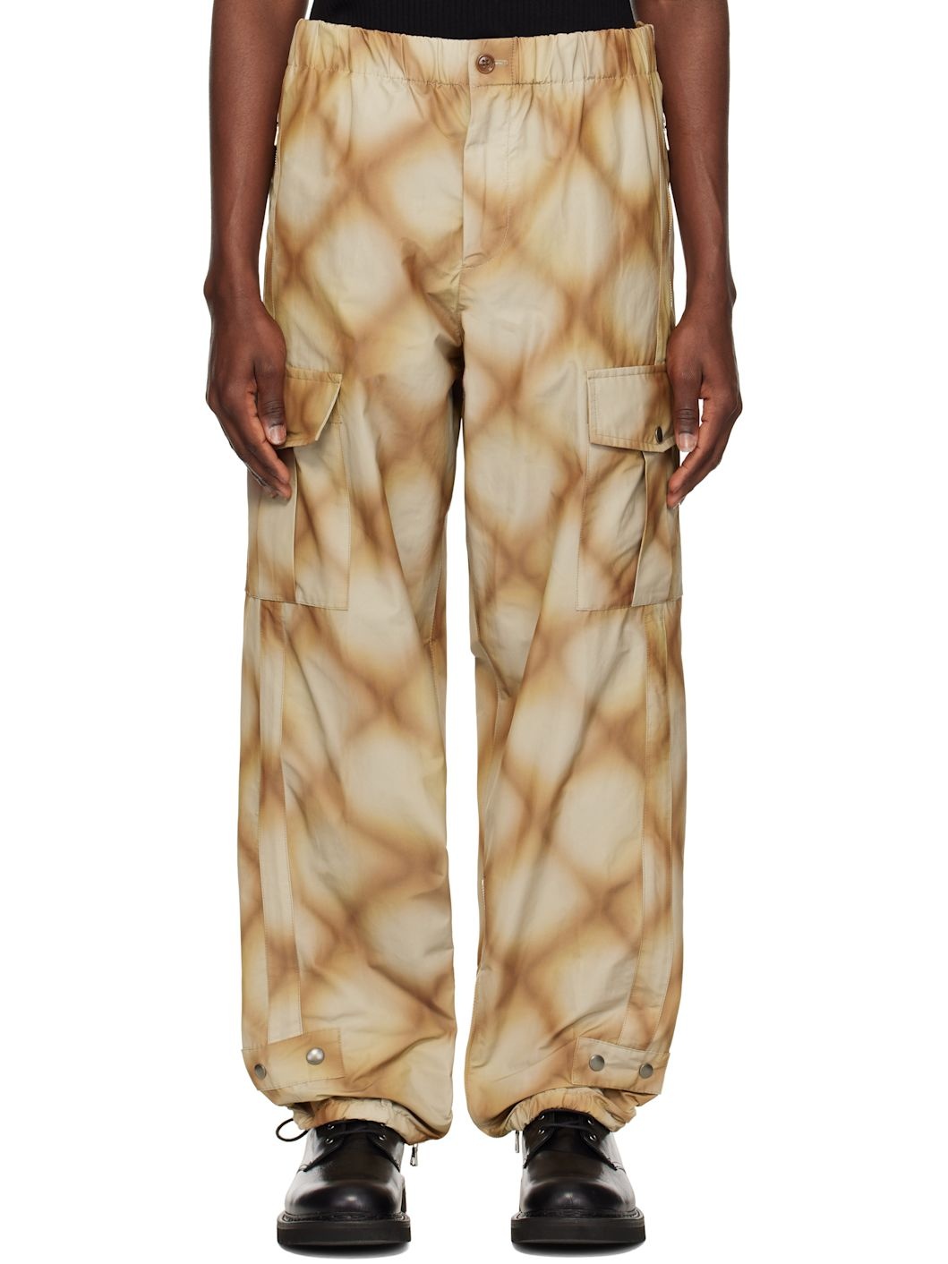 Polyester- and cotton-blend taffeta cargo pants. Check pattern printed throughout. · Concealed drawstring at elasticized waistband · Four-pocket styling · Zip fly · Cargo pocket at outseams · Zip vent and rivets at elasticized cuffs Supplier color: Rust 58% polyester, 42% cotton. Made in Romania 251358M188022