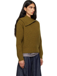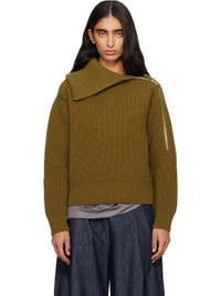 Rib-knit wool turtleneck. · Turtleneck converts to foldover neck · Offset zip closure · Dropped shoulders Supplier color: Khaki 100% wool. Made in Belgium 252358F099009