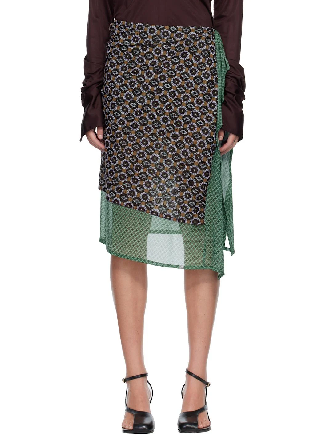 Stretch nylon mesh midi skirt. · Patterns printed throughout · Crystal-cut detailing throughout · Layered construction · Elasticized waistband · Self-tie fastening at side · Vent at side seam · Unlined Supplier color: Brown 94% polyamide, 6% elastane. Made in Turkey 252358F092006