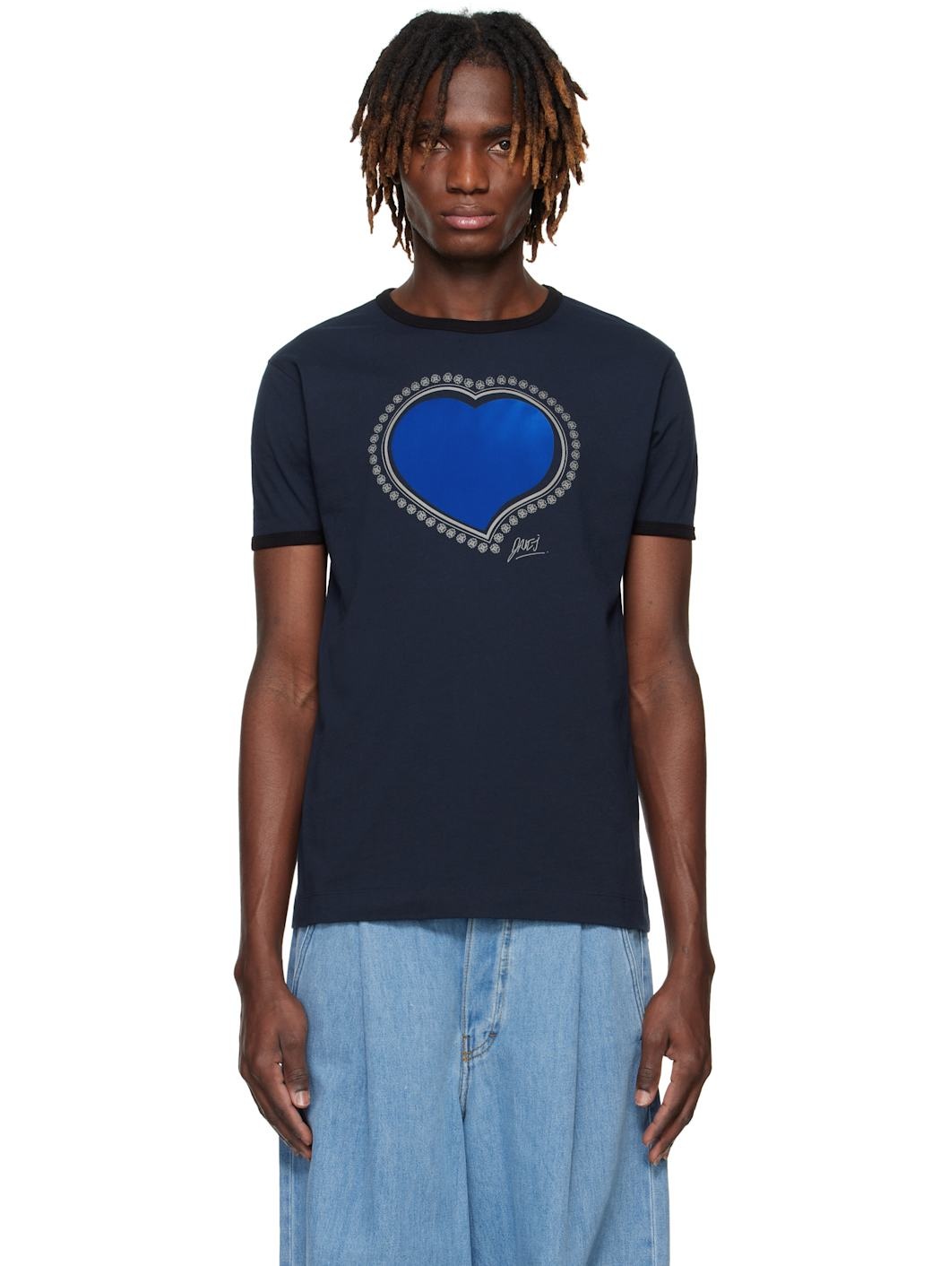 Slim-fit cotton jersey T-shirt. · Rib-knit crewneck and cuffs · Graphic and logo printed at front Supplier color: Navy 100% cotton. Made in Turkey 251358M213043