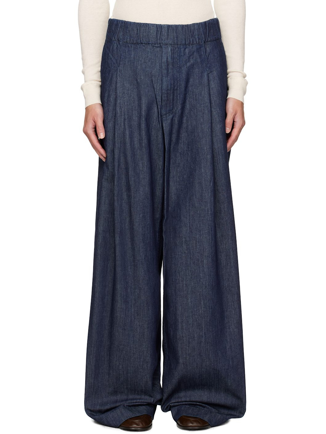 Non-stretch denim jeans. · Concealed drawstring at elasticized waistband · Four-pocket styling · Zip fly · Extended legs Supplier color: Indigo 100% cotton. Made in Tunisia 252358M186019