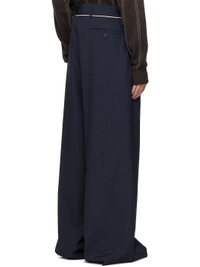 Wool canvas trousers. · Belt loops · Self-tie drawstring at waistband · Four-pocket styling · Zip fly · Loop at front waistband · Pleats at waist · Creased legs Supplier color: Navy 100% wool. Made in Hungary 252358M191045