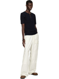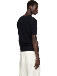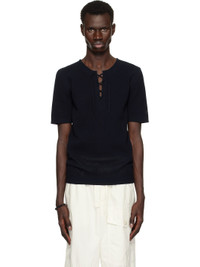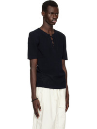 Open-knit viscose-blend T-shirt. · V-neck · Lace-up closure Supplier color: Navy 70% viscose, 30% polyester. Made in Belgium 251358M213004