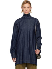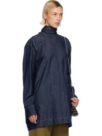 Non-stretch denim shirt. · Stand collar with wraparound self-tie scarf · Barrel cuffs · Pleats at back · Contrast stitching in tan Supplier color: Indigo 100% cotton. Made in Tunisia 252358F060001