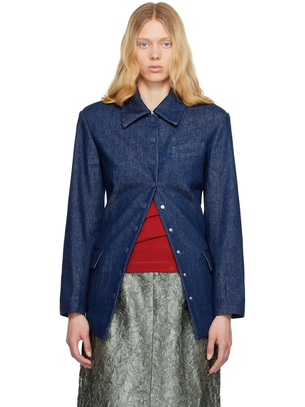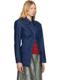 Non-stretch denim jacket. · Spread collar · Press-stud closure · Welt pocket at chest · Flap pockets · Padded shoulders · Full twill lining Supplier color: Blue Body: 100% cotton. Lining 1: 100% cotton. Lining 2: 51% cotton, 49% viscose. Made in Italy 251358F060000