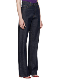 Non-stretch denim jeans. · Belt loops · Five-pocket styling · Button fly · Logo patch at back waistband · Logo-engraved silver-tone hardware · Contrast stitching in tan Supplier color: Indigo 100% cotton. Made in Tunisia 251358F069004