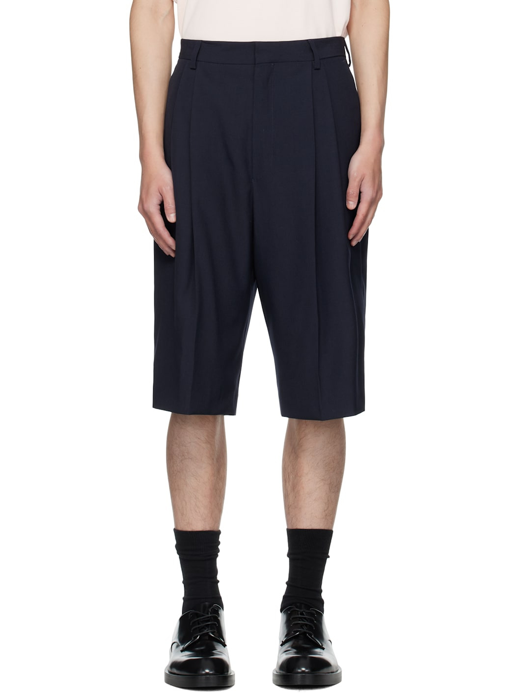 Wool toile shorts. · Straight-leg · High-rise · Belt loops · Four-pocket styling · Zip fly · Pleats at front Supplier color: Navy 100% wool. Made in Morocco 252358M193025