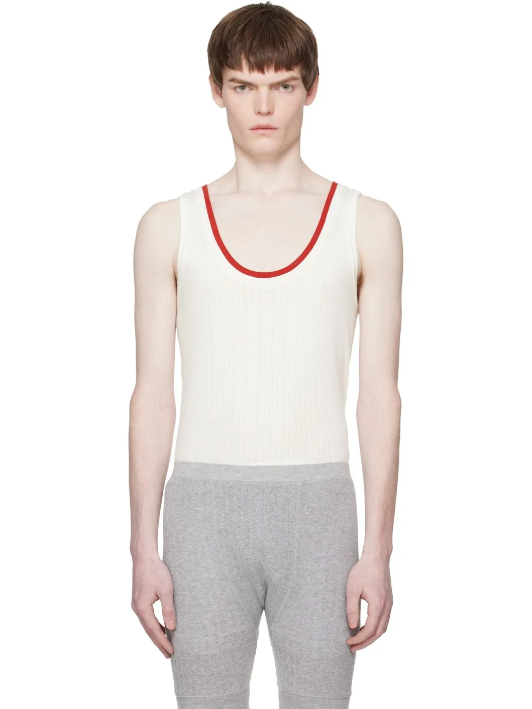Cotton pointelle tank top. Layered rib-knit scoop neck. Supplier color: Off white 100% cotton. Made in Turkey 261358M214011