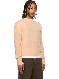 Brushed knit alpaca- and merino wool-blend sweater. · Rib-knit crewneck, hem, and cuffs · Raglan sleeves Supplier color: Peach 60% alpaca, 25% merino wool, 15% nylon. Made in Belgium 252358M201016