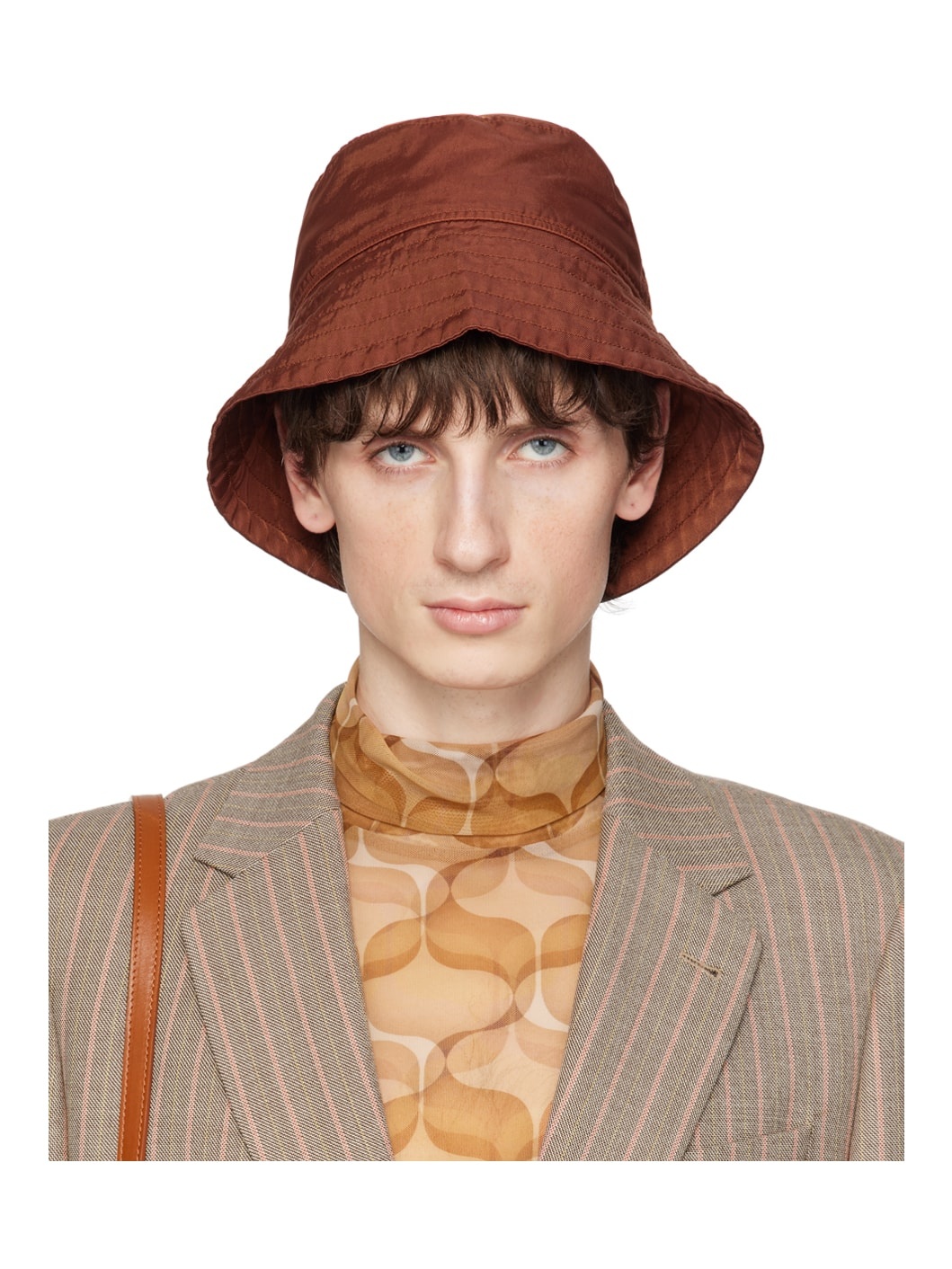 Paneled nylon twill bucket hat in orange. · Quilted brim · Twill browband Supplier color: Rust 100% polyamide. Made in Bulgaria 241358M140000