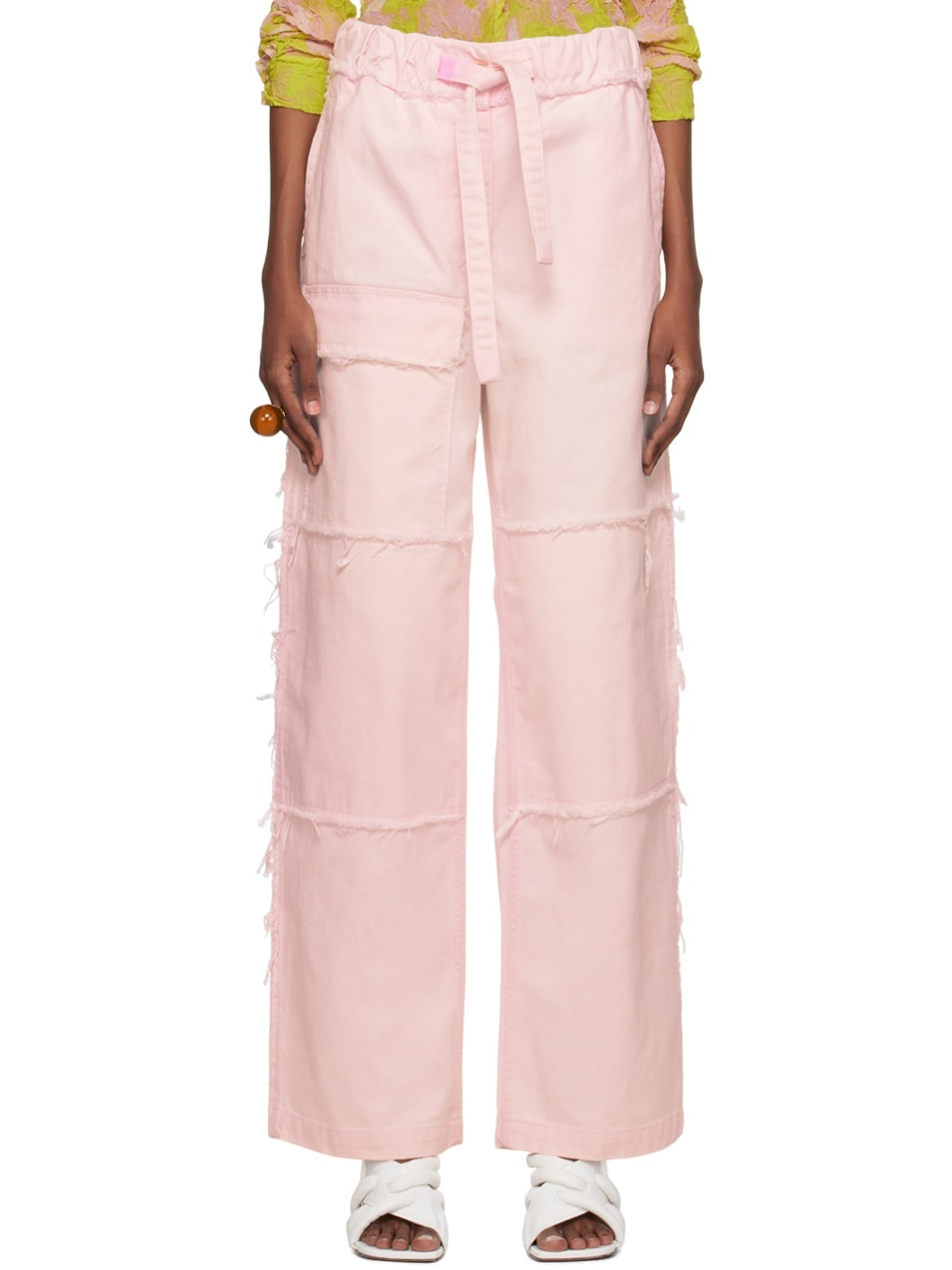 Wide-leg non-stretch denim jeans. Fading and fringed detailing throughout. · Paneled construction · Drawstring at waistband · Three-pocket styling · Zip-fly · Cargo pocket at front Supplier color: Blush 100% cotton. Made in Italy 231358F087006