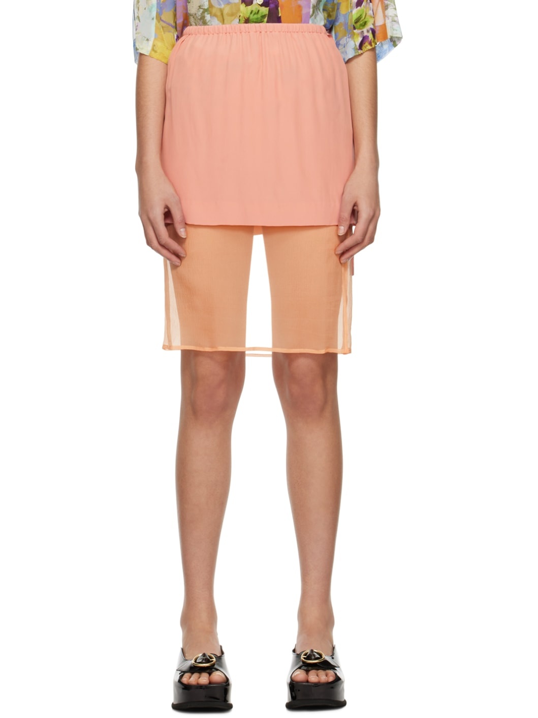 Layered silk and acetate-blend crepe skirt. · Drawstring at elasticized waistband · Vent at sheer underlay Supplier color: Old rose Body: 75% acetate, 25% silk. Lining: 100% silk. Made in India 231358F090011