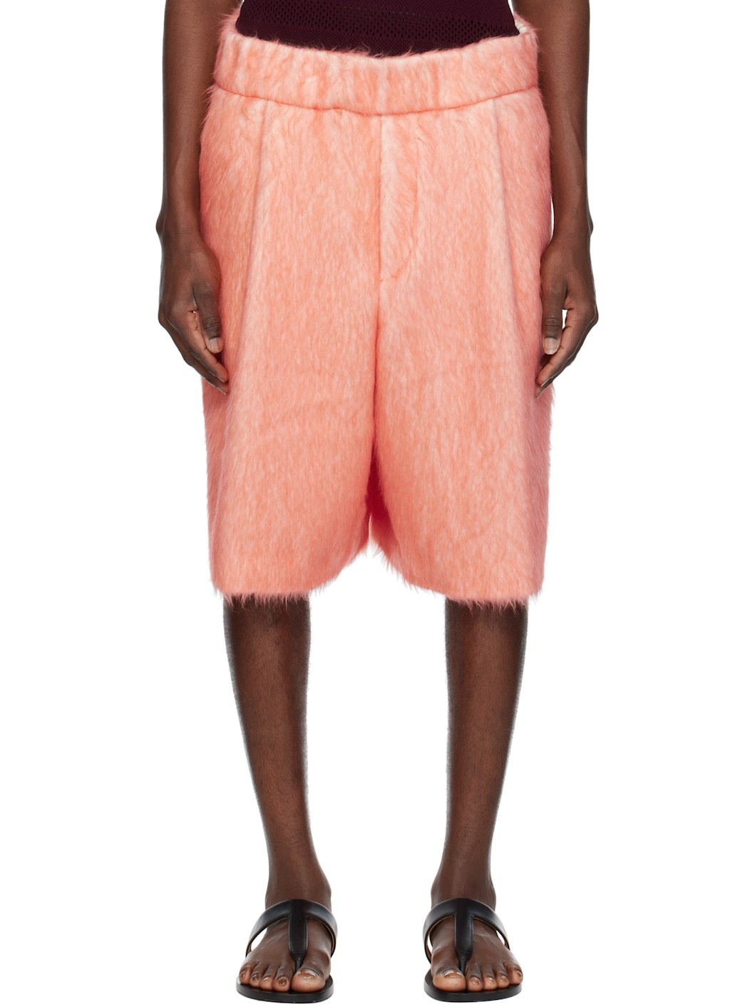 Shag-knit alpaca-and wool-blend shorts. · Concealed drawstring at elasticized waistband · Three-pocket styling · Zip fly · Pleats at front Supplier color: Coral 62% alpaca, 38% wool. Made in Bulgaria 251358M193008