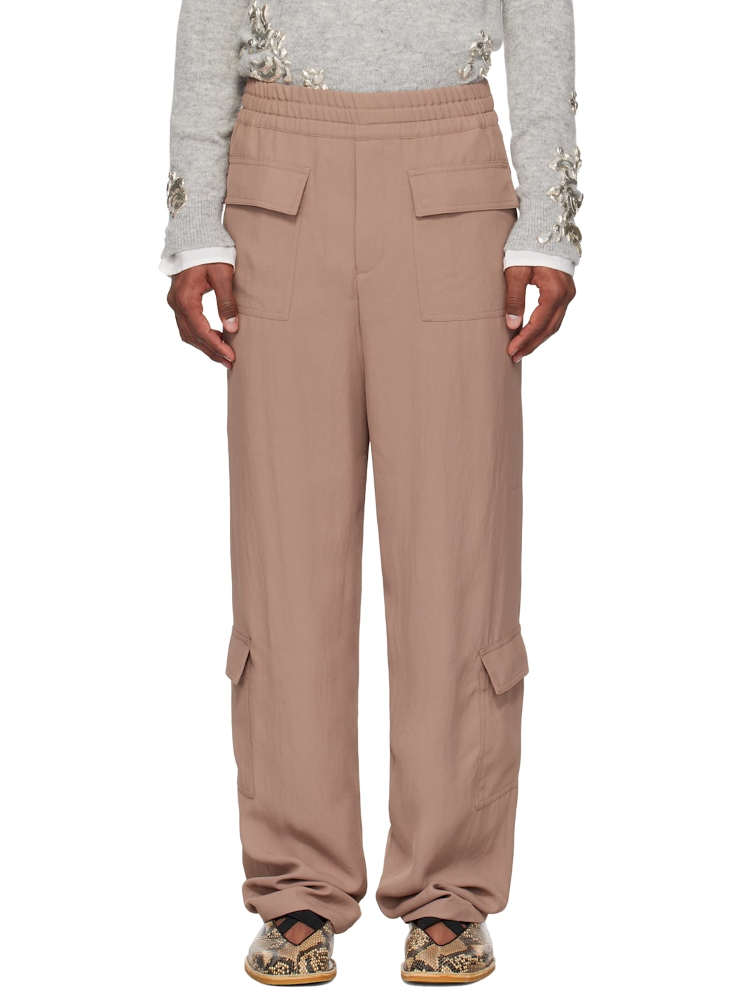 Acetate twill cargo pants. · Concealed drawstring at elasticized waistband · Five-pocket styling · Zip fly · Flap pocket at outseams · Darts at back waistband Supplier color: Peach 100% acetate. Made in Romania 251358M188000