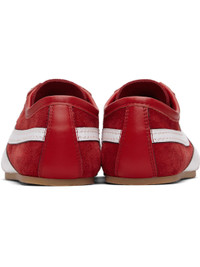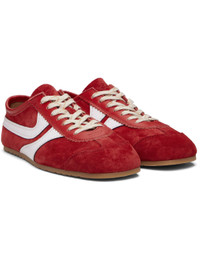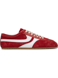 Low-top calfskin suede and nappa calfskin sneakers. · Serrated edge at vamp · Lace-up closure · Logo printed at tongue · Treaded rubber sole Supplier color: Red Upper: calfskin. Sole: rubber. Made in Italy 252358M237005