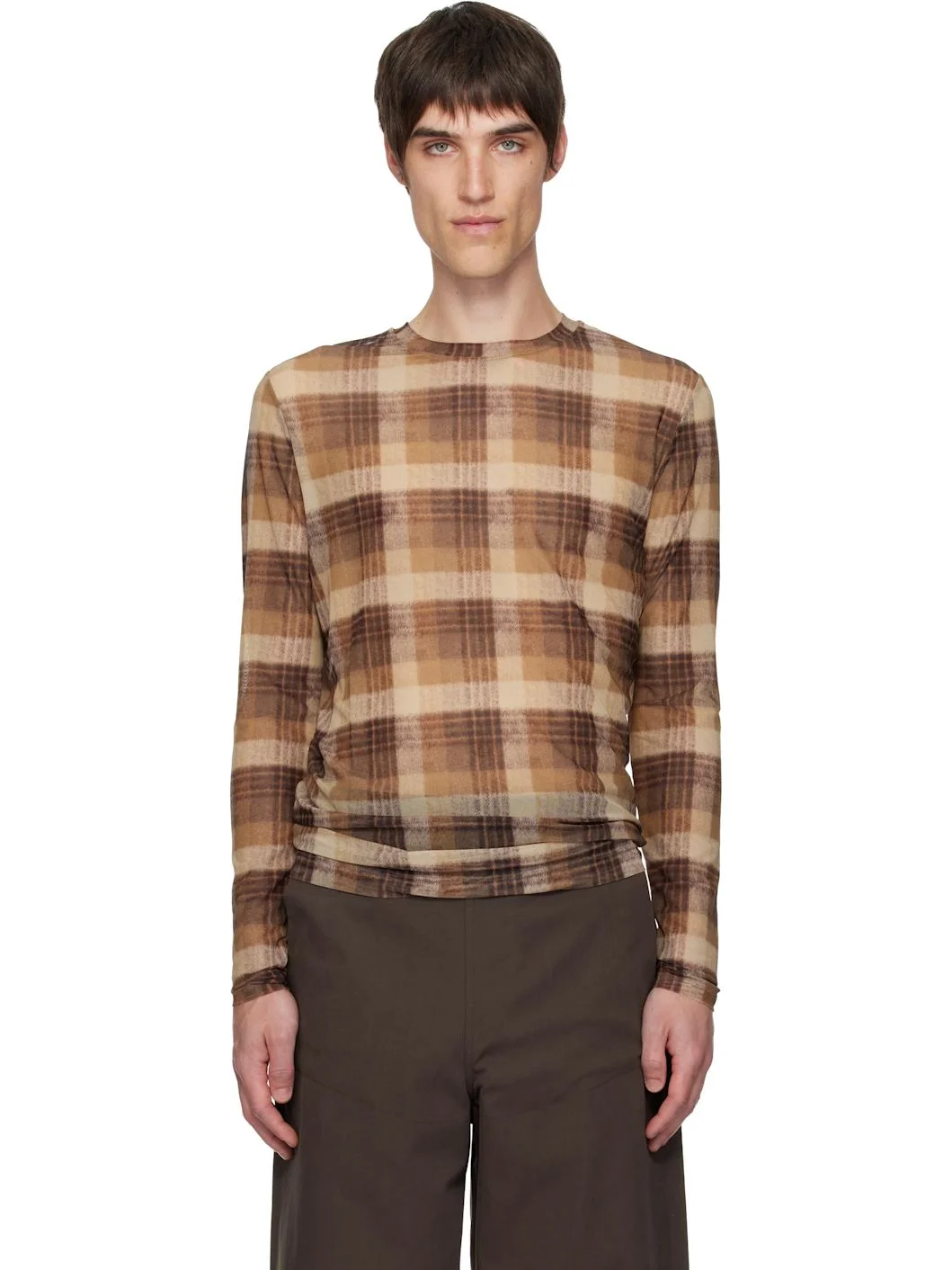 Semi-sheer stretch nylon mesh T-shirt. · Check pattern printed throughout · Crewneck Supplier color: Tan 94% polyamide, 6% elastane. Made in Turkey 252358M213003