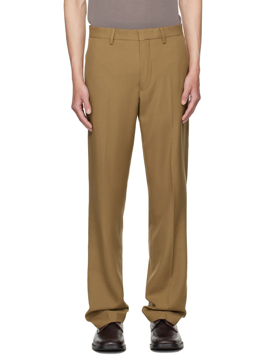 Wool twill trousers. · Belt loops · Four-pocket styling · Zip fly · Creased legs Supplier color: Tan 100% wool. Made in Morocco 252358M191057