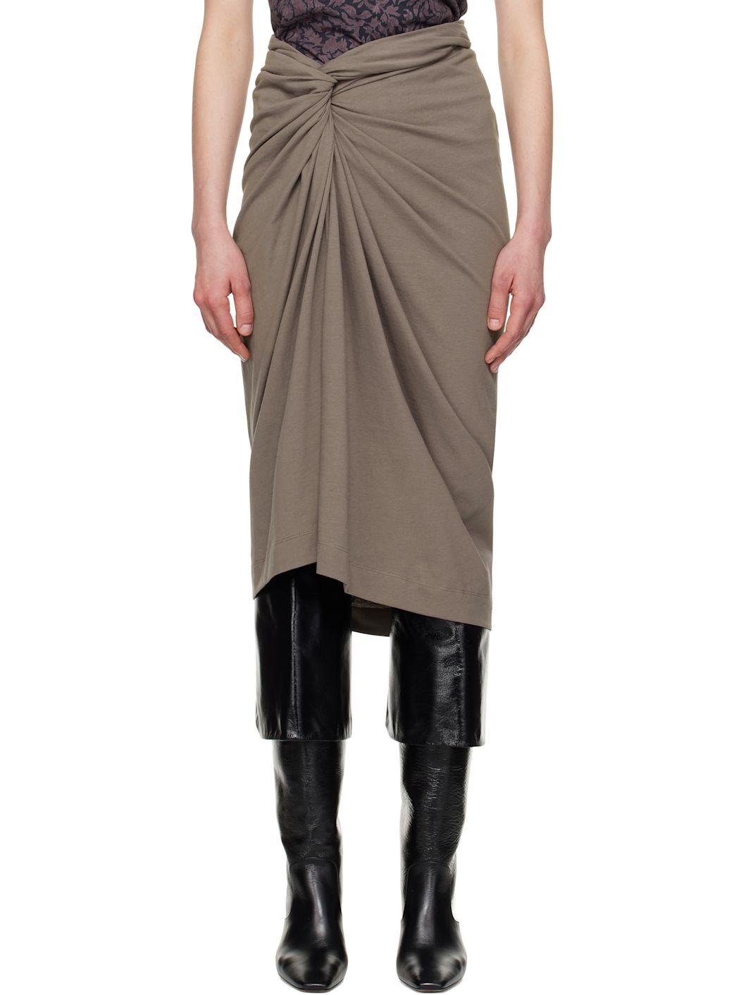 Heavyweight cotton jersey midi skirt. - Knotted detailing at elasticized waistband - Draping at front Supplier color: Smoke