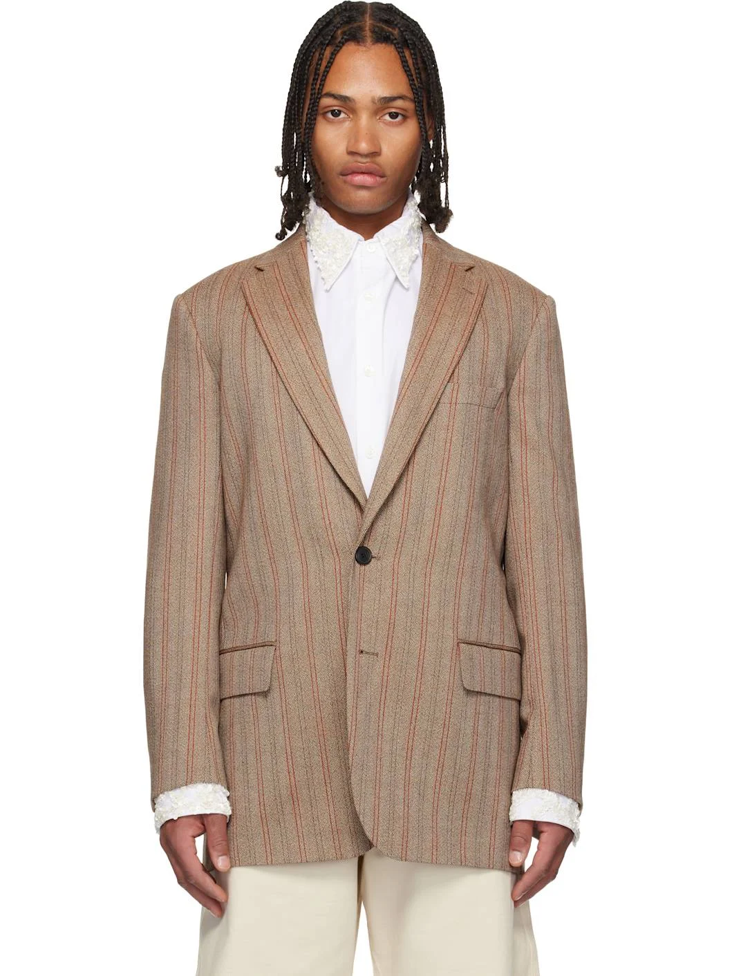 Wool tweed blazer. · Striped pattern throughout · Loose-fit · Notched lapel · Single-breasted button closure · Welt pocket at chest · Flap pockets at waist · Surgeon's cuffs · Central vent at back hem · Welt pocket at interior · Full satin twill lining Supplier color: Rust Body: 100% wool. Lining 1: 100% cupro. Lining 2: 100% viscose. Made in Morocco 252358M195030