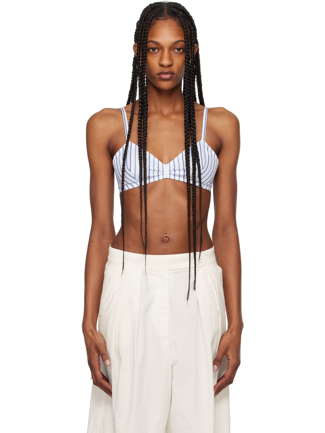 Cotton poplin bra. Stripes throughout. · Elasticized hem · Adjustable shoulder straps · Hook-eye fastening at back · Unlined Supplier color: Light blue 100% cotton. Made in Bulgaria 241358F111008