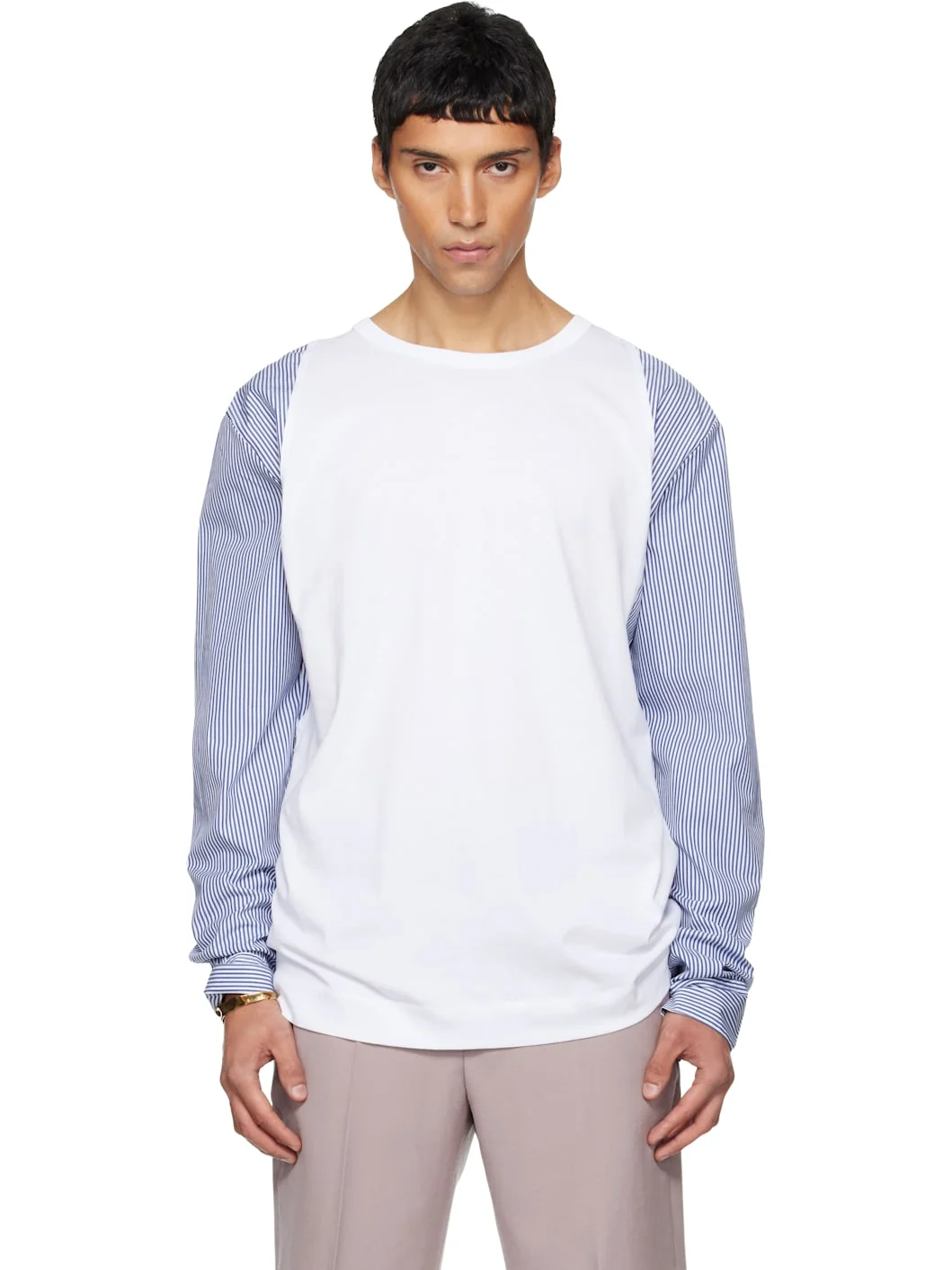Heavyweight cotton jersey and poplin T-shirt. · Paneled construction · Rib-knit crewneck · Pinstripes at sleeves · Adjustable buttoned barrel cuffs Supplier color: White 100% cotton. Made in Turkey 252358M213007