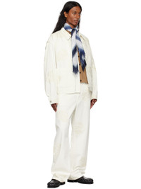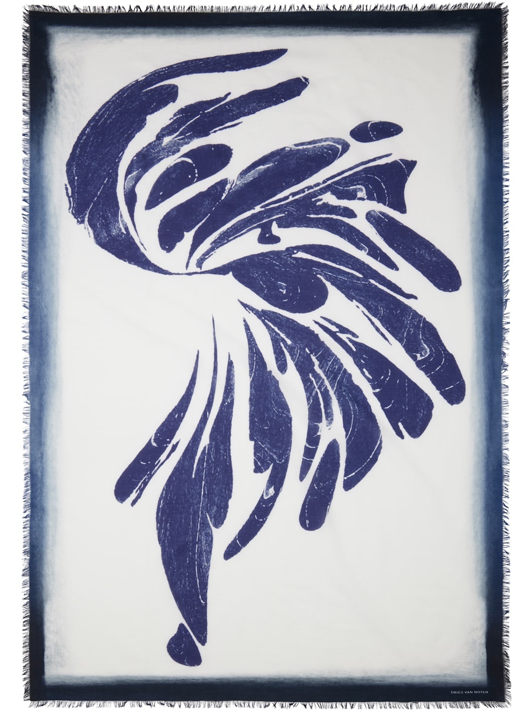 Rectangular cotton voile scarf in white and navy. · Graphic printed at face · Logo printed at edge · Frayed edges · L51" x W35" Supplier color: Navy 100% cotton. Made in Italy 252358M150000