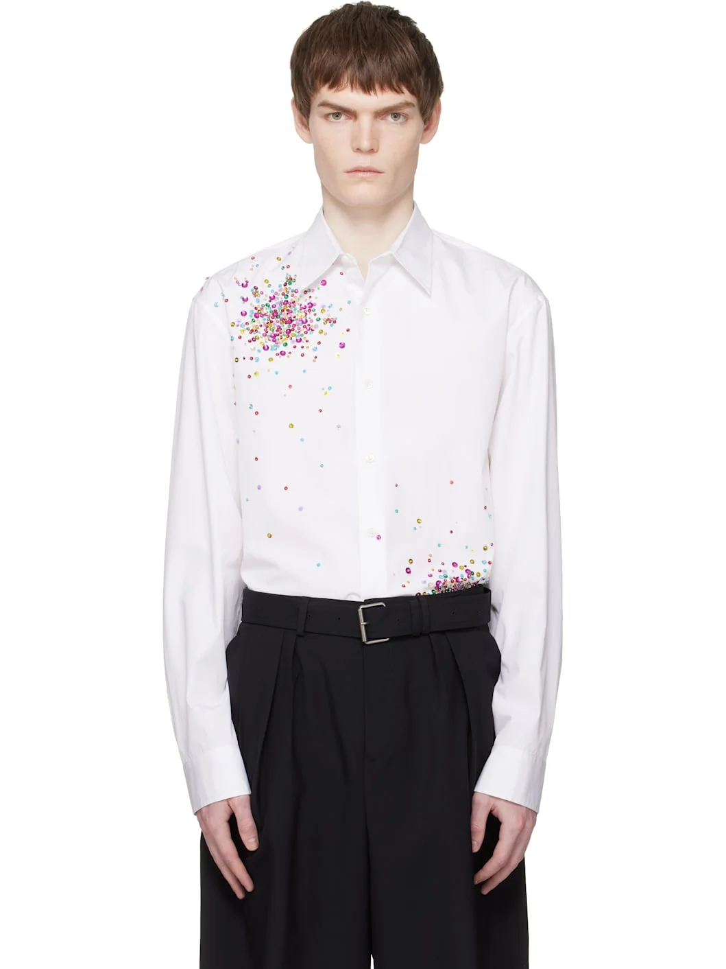 Cotton poplin shirt. · Sequinned detailing throughout · Spread collar · Button closure · Shirttail hem · Buttoned barrel cuffs Supplier color: White 100% cotton. Made in India 261358M192059